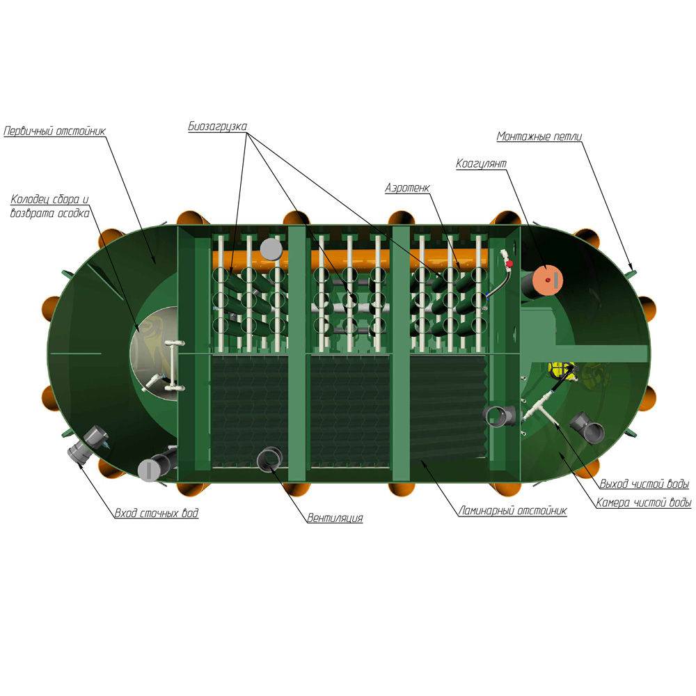 Очистное сооружение поставляется полностью укомплектованным и готовым к монтажу модулем.
